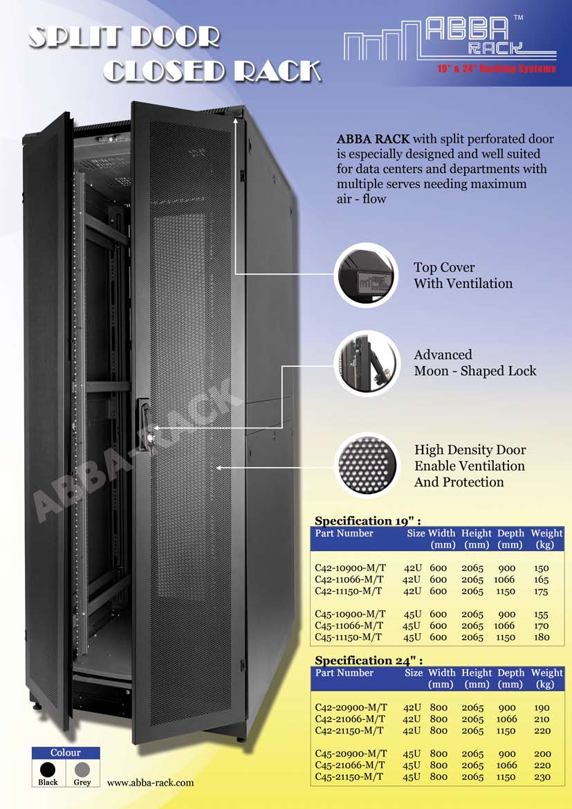 Closed Rack, Wallmount Rack, Open rack and Rack Accessories : Flat Shelf, Telescopic Drawer, PDU, Roof Fan, Wire Management, Blank Panel, Cantilever Shelf, Cable Tray, Castor, Digital Temperature Unit.